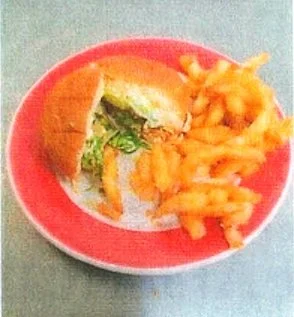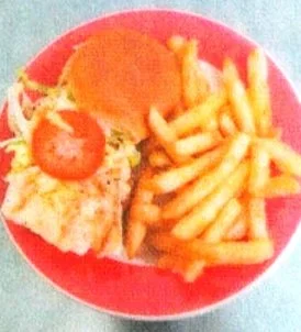 Grilled fillet of chicken, served on a hamburger bun with mayonnaise, lettuce, tomato & french fries.