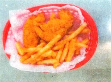 2 pieces of breaded chicken tenders, served with fries or rice and beans.