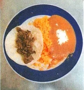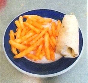 1 Large flour tortilla (8 inch) rolled up and filled with cheese, rice & beans. Served with fries and meat of your choice, steak or chicken.